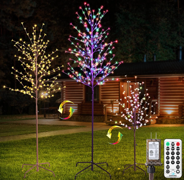 Enjoy 11 unique lighting modes with the color changing cherry tree lights, from steady glow to twinkle and wave patterns. A built-in memory function keeps your last setting, so you don’t have to reset every time. With the included remote control, you can easily power on/off, adjust brightness levels, set timers, and switch between modes—making these light up cherry blossom trees simple and convenient to use.
