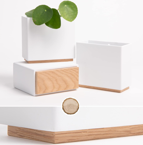 Transform your home with our wall mounted plant pots, designed to bring elegance and greenery into any space. Crafted from high-quality resin, these resin plant pots are more stable and durable than ordinary plastic options, ensuring a flawless geometric look. The real wood veneer at the base adds a touch of warmth, making these hanging flower pots a stunning piece of modern wall décor for your home.